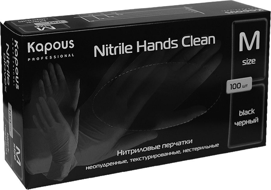 Нитриловые перчатки черные М 100шт неопудренные, текстурированные, нестерильные KAPOUS