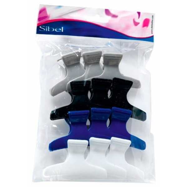 Зажим SIBEL пластиковый узкий 4 цвета 12шт